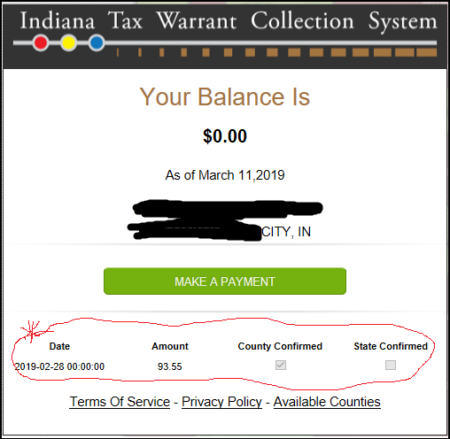 - If the Tax Payer has made a payment using our website we show his payment, date it was posted by the County and the status of it, County or State Confirmed. We found this useful in cutting down on the calls about payments being processed.