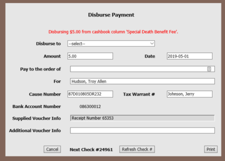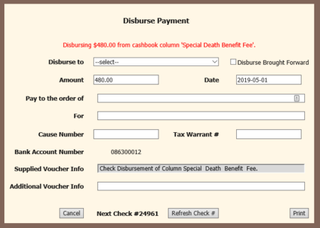 Disbursing a check in ATWS/Cashbook