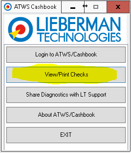 To print the check, return to the ATWS Cashbook Menu and select the “view/Print Checks” button: